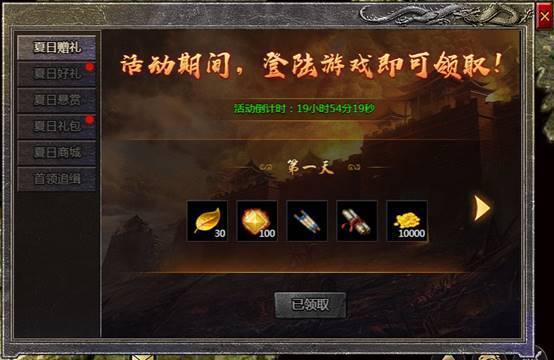 1. 活动期间玩家登录游戏即可领取登录奖励
