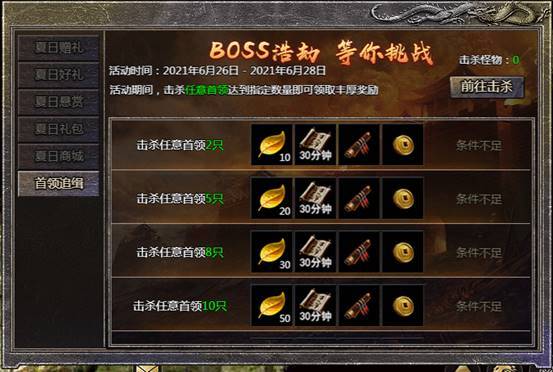 1.活动期间击杀指定数量的怪物即可获得奖励