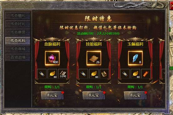 活动内容:活动期间可消耗元宝购买特惠礼包
