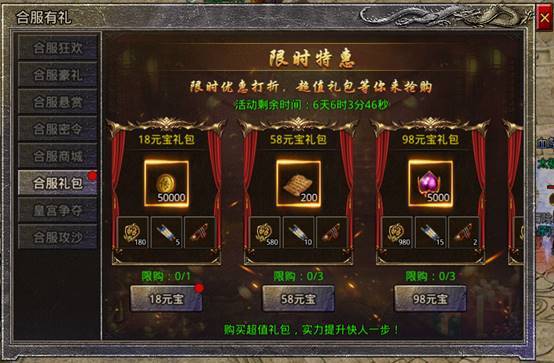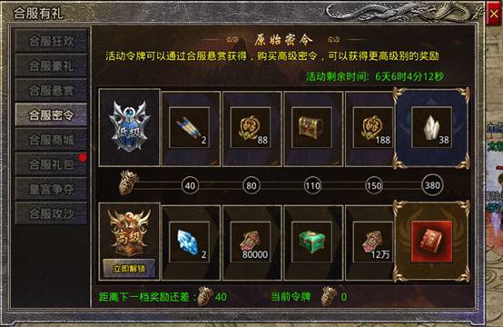 功勋*100W|原始币*1980|10倍经验卷(绑)*20|藏宝图*3 |