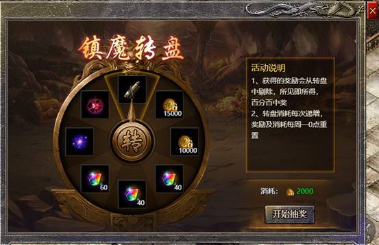 2、转盘消耗每次递增,获得的奖励会从转盘中剔除,所见即所得,百分百中奖