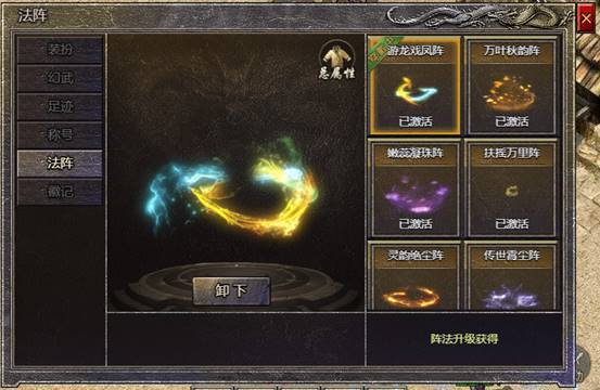 3、同时装备同等级的天珠和金徽将激活套装,获得额外套装属性