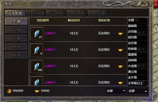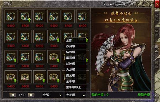 拍卖行和黑市筛选优化,玩家可以更为方便地筛选火龙级、通云级和金牛级装备了