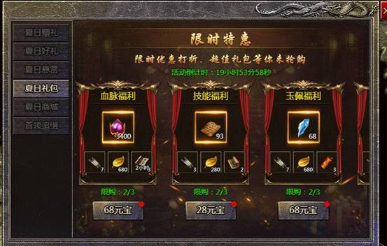 活动内容:活动期间可消耗元宝购买特惠礼包