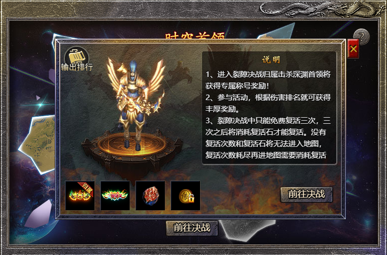 5、复活石可通过参与时空秘境与决战试炼获得,若玩家没有复活次数也没有复活石,则无法再进入地图