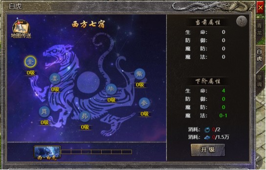 2、青龙星魂总等级达到60,消耗白虎星核和星砂提升白虎星核等级