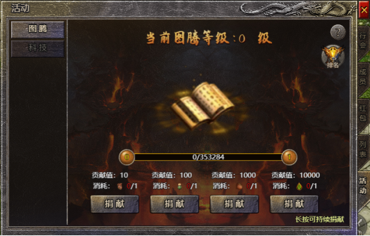 2、行会成员可捐献巨人材料,升级行会图腾等级